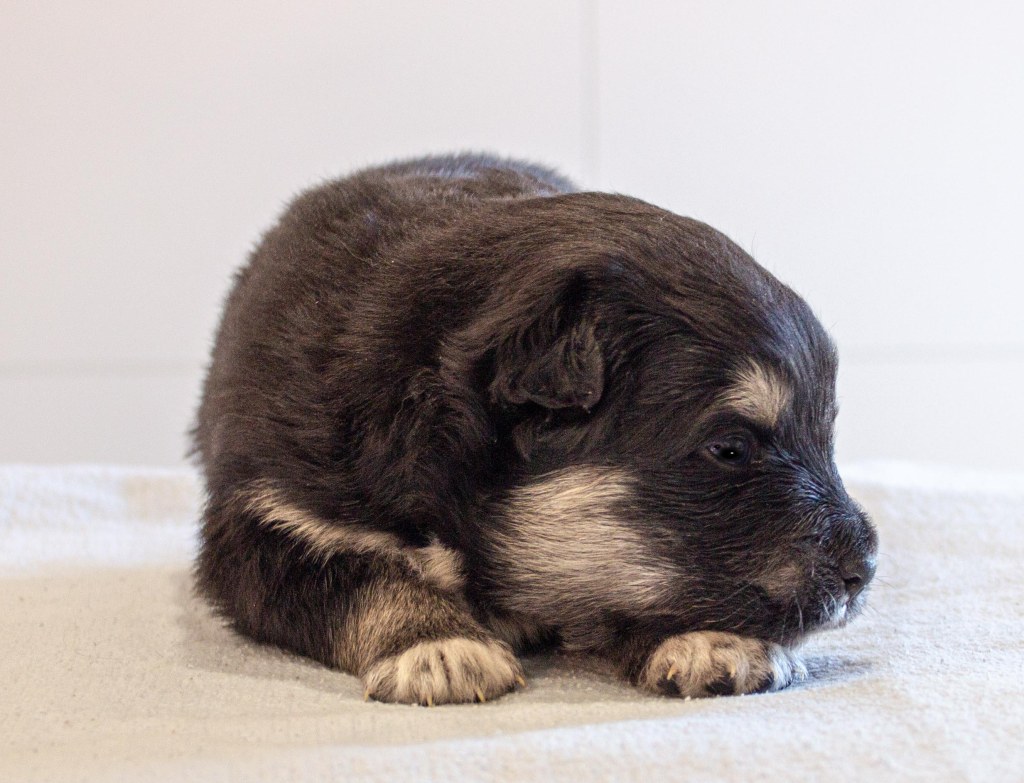 We have had a happy litter of three boys and three girls delivered on the night of August 31. There were no unexpected situations – everything was just by the book, with a puppy appearing every 30-40 minutes. Tyra seems to be a really good and caring mother – happy family has it very snuggly in their den.