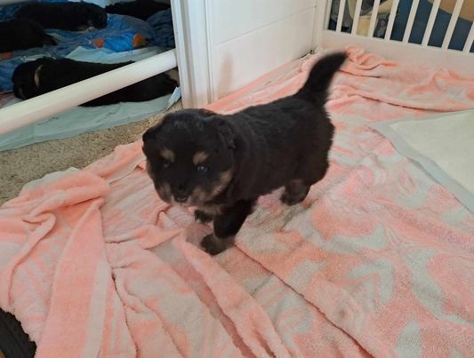 With the puppies approaching the age of 8 weeks when they can legally be sent to their new homes, 2 gorgeous girls are still available to their new forever homes. Do not delay, you will acquire a faitful and beautiful friend. They are highly intelligent and very trainable. One should see how they crave human interaction!